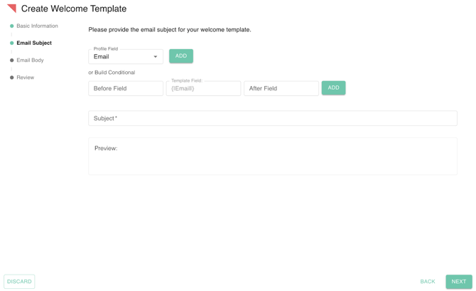 3. Fill out Email Subject, where you can add profile fields or build conditional fields.